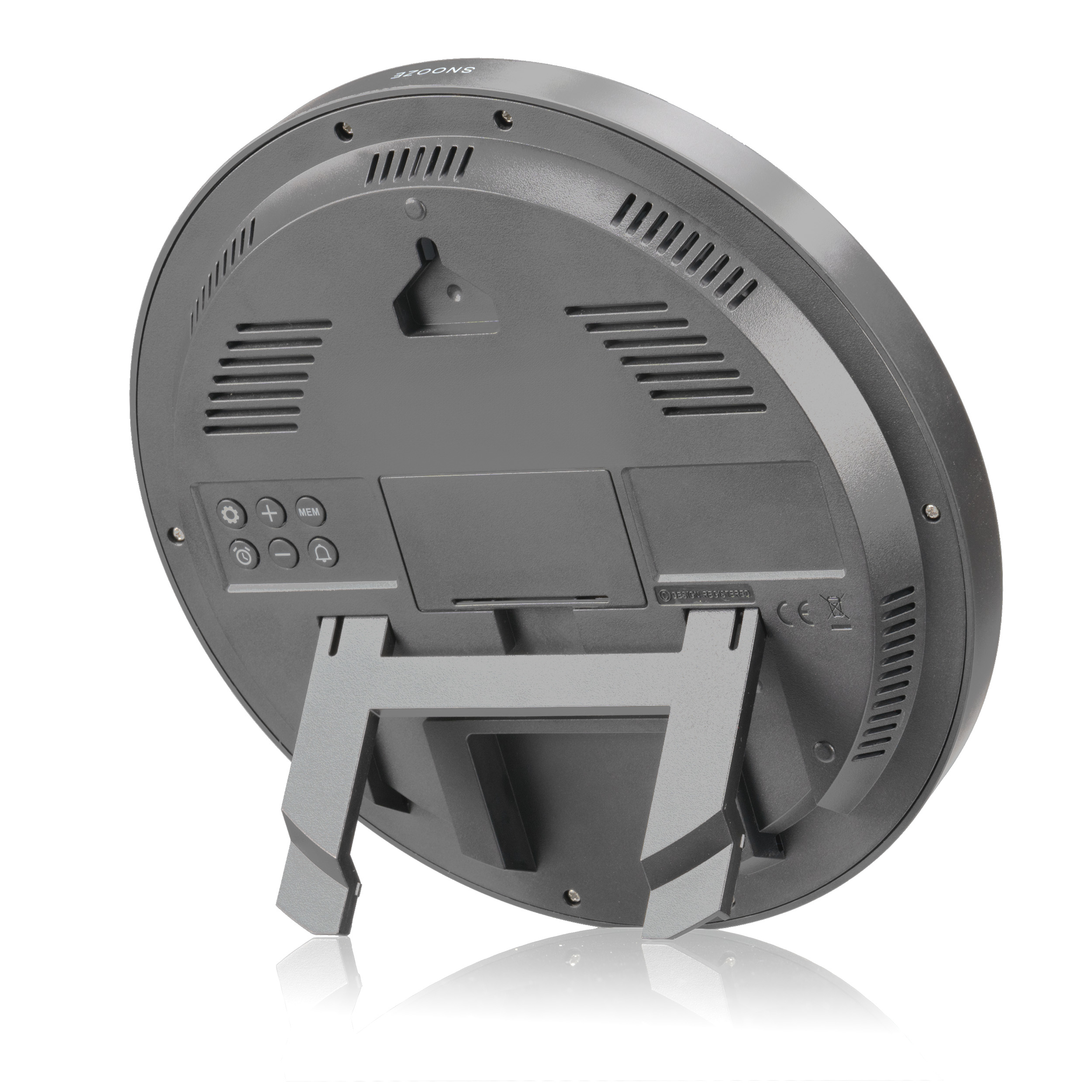 • Ausklappbarer Standfuß für die Nutzung als Tischuhr